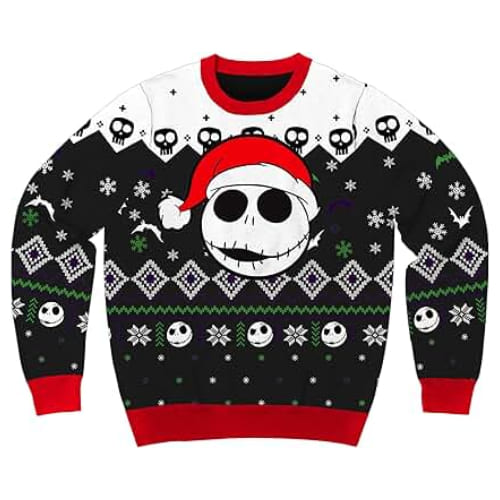 Embrace the haunting charm of the holidays with officially licensed Nightmare Before Christmas sweaters that masterfully blend gothic flair with festive cheer. These iconic “ugly sweaters” showcase fan favorites like Jack Skellington, Sally, and Oogie Boogie through cozy knitted patterns or bold graphic fleece. Available at top retailers like Hot Topic, BoxLunch, and the Disney Store, these versatile designs feature spooky-meets-merry motifs such as spiderweb snowflakes and patchwork hearts. With sizes ranging from S to 5XL and materials including machine-washable acrylic and soft cotton, there is a perfect fit for every citizen of Halloween Town.
